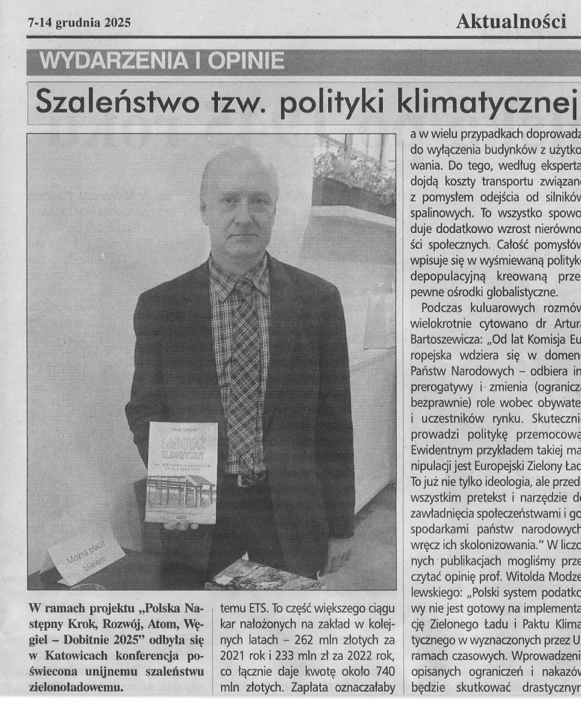 W związku z konferencją na temat szaleństwa tzw. polityki klimatycznej UE, która odbyła się w Zabrzu zawitałem na łamy Myśli Polskiej nr 49-50 z 2025 roku.