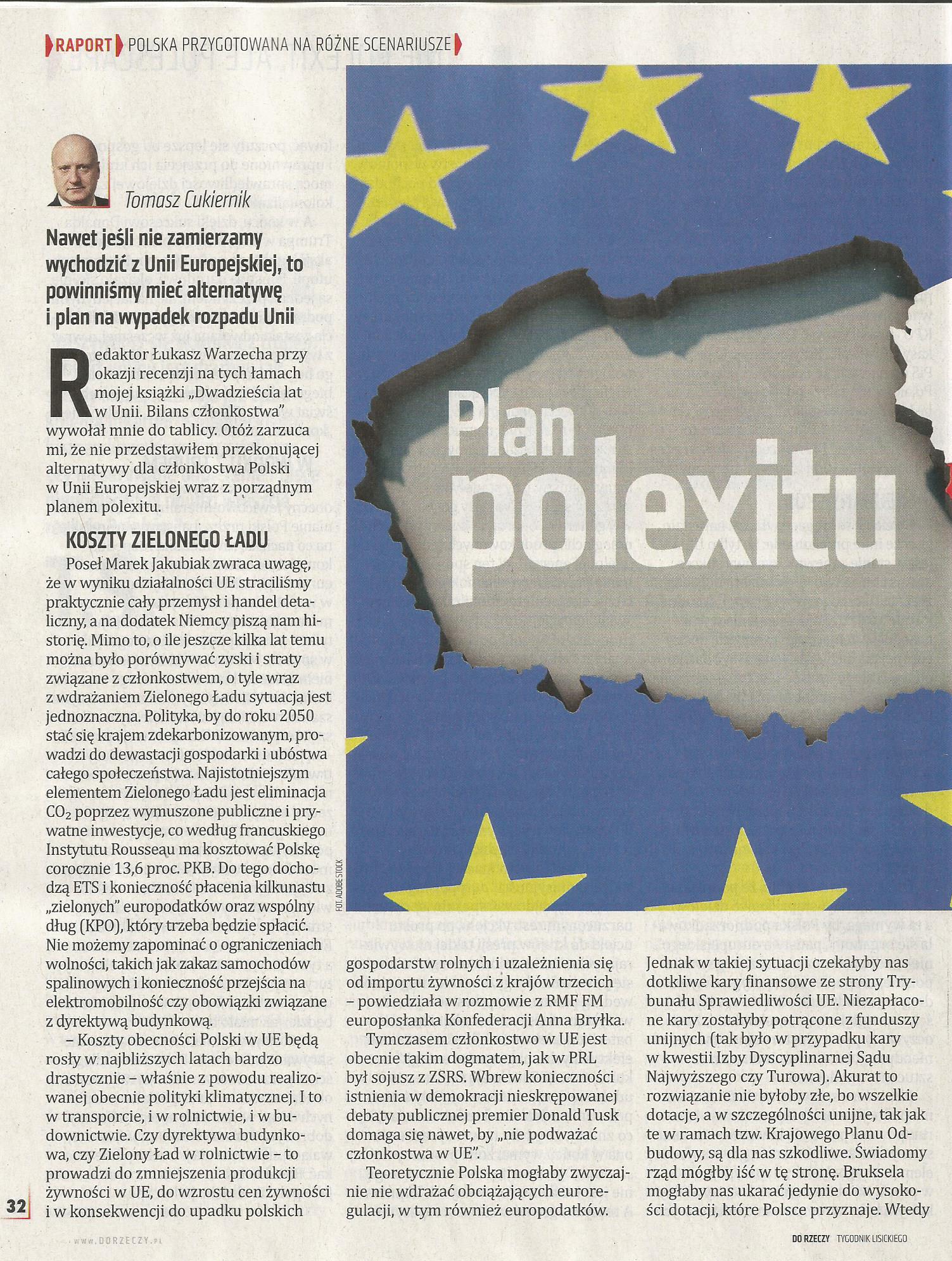 Nawet jeśli nie zamierzamy wychodzić z Unii Europejskiej, powinniśmy mieć alternatywę i plan na wypadek rozpadu Unii. W nr 2 z 2026 roku tygodnika “Do Rzeczy” został opublikowany, zaanonsowany na okładce, mój artykuł pt. Plan polexitu.