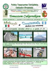 28 listopada o godz. 17.30 zapraszam na mój pokaz multimedialny Meksyk i Gwatemala dobre na wiosnę, który odbędzie się w Miejskim Domu Kultury w Chrzanowie.