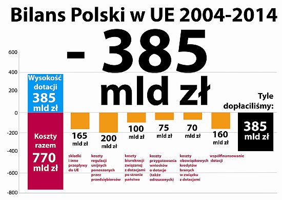 Mój bilans 10-letniego członkostwa Polski w UE – dopłaciliśmy 385 mld zł. Konferencja prasowa na ten temat: Bilans uczestnictwa Polski w UE jest ujemny!