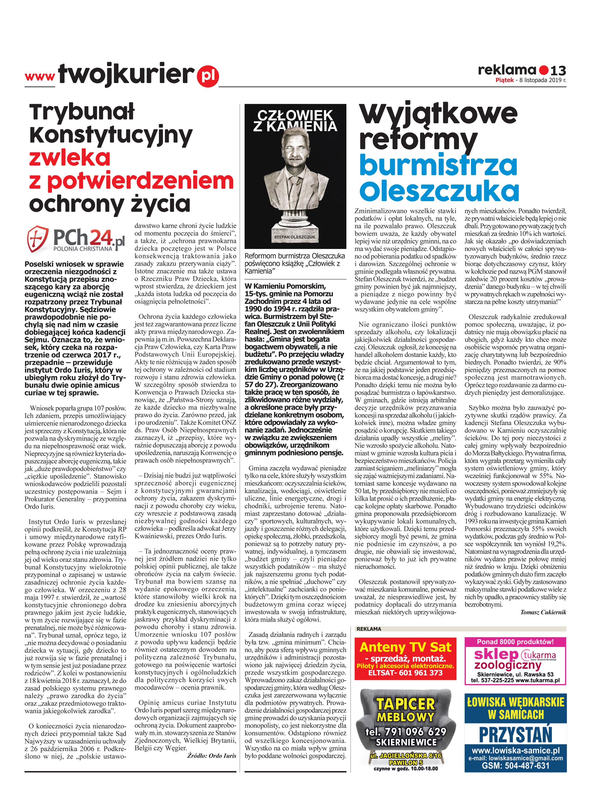 W lokalnej gazecie ze Skierniewic "Twój Kurier Regionalny" został opublikowany mój artykuł pt. Wyjątkowe reformy burmistrza Oleszczuka.