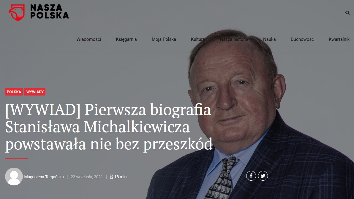 Na stronach Naszej Polski został opublikowany wywiad ze mną na temat biografii Stanisława Michalkiewicza pt. Pierwsza biografia Stanisława Michalkiewicza powstawała nie bez przeszkód.